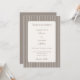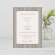 Fira din bröllpsdag med denna eleganta randiga bröllpsinbjudan, med en tidlös elfenbensvit bakgrund i par med varma, mjuka taupé-ränder. Den rena, klassiska layouten skapar ett förfinat utseende som känns både modernt och traditionellt, vilket gör det till ett perfekt val för par som älskar underdriven elegans.