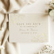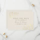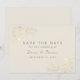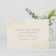 Elegant Kvarhåll Datum-kort med ömtåliga guldfärgade blommiga accenter på en mjuk elfenbensvit bakgrund. Har tidlös script och serif-typsnitt med full anpassning för era namn och datum. Ett romantiskt och klassiskt sätt att tillkännage ert bröllop med stil.
