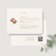 Chic med modern elegans. De här detaljkorten i bröllop har en underbar rosa ros-buquet, bröllop-detaljtext, QR-kod för webbplats och en uppsättning contemporary av typsnitt på oliv grönt, mot en grå elfenbensbakgrund.