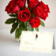 Tidslös elegans: Traditionell minimalistisk röd ros bröllop med manustypografi och elfenbensbakgrund i guld.