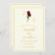 Tidslös elegans: Traditionell minimalistisk röd ros bröllop med manustypografi och elfenbensbakgrund i guld.