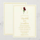 Tidslös elegans: Traditionell minimalistisk röd ros bröllop med manustypografi och elfenbensbakgrund i guld.