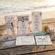 En del av samlingen The Ivory Coast, denna raffinerade bröllopsinbjudan är designad med en minimalistisk känsla för kust och en underdriven elegans. Diskret detaljerad med snäckor förankrar subtilt layouten, i kombination med ren typografi och generöst mellanrum för ett utseende som känns både modernt och tidlöst.