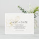 Den här chicen och den moderna inbjudan till elfenben och vitt bröllop innehåller blommigt faux guld inslag vid sidan av elegant typografisk text. Den här enkla utformningen med contemporaryn typsnitt är för det moderna paret snyggt och elegant.