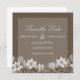 Elegant och raffinerad Rustic Blommigt Spara datum meddelande med två tonade digitala konstträplattor i mörk brun och en underbar kaskad av vackra blommor som ligger grund i elfenbensmönstret. Denna fina utformning är perfekten för att tillkännage ett säsong bröllop med ett utomhus- eller trädgårdstema. Enkel att anpassa, lägg bara till informationen om bröllop i den fält som tillhandahålls. Klicka på knappen "Anpassa" för att hitta ytterligare anpassningsalternativ.