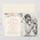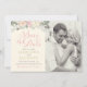 Denna eleganta boho-stil bröllopsinbjudan har romantiska peonblommor, botaniska blad och rustika fjäderaccent. Anpassa med egen text för ditt stora evenemang och med ett favoritfoto från förlovningen. Mjuk färgskala med nyanser av rosa, persika, kräm, grönt, grått och guld. Perfekt för vår- eller sommarevenemang.