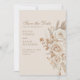 Meddela din speciella dag med detta mjuka elfenbensvita och beige "save the date"-kort med ömtåliga vita rosor och torkade blomsterdekorationer. Den neutrala färgpaletten och den eleganta typografin ger ett tidlöst första intryck.