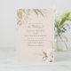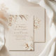 Denna eleganta elfenbensfärgade bröllopsinbjudan har ömtåliga vita rosor och mjuka torkade blommor arrangerade på en varm beige bakgrund. Den förfinade typografin och neutrala champagnefärgade nyanser skapar en tidlös estetik som är perfekt för moderna rustika, finkulturella och minimalistiska bröllop.