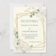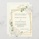 En elfenbensbakgrund som dekoreras med vita blommor och ett faux guld geometric ram. Anpassa och lägg till namn och information.