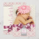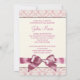 Elfenbensvit och rosa damask-barnflicka foto dop inbjudningar