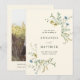 Detta eleganta bröllop sparar datum-kort har handmålade akvarell vildblommor i smörgul, salvia grön, dammig grön och ljust blå med ett foto och mer information på baksidan. För mer avancerad anpassning av denna design, vänligen klicka på den BLÅA DESIGNVERKTYGSKNAPPEN ovan! Matchande artiklar finns också tillgängliga.