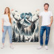 Elk i en mystisk skog under ett månbelyst berg fleecefilt