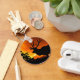 En älk står på en högtrappa som en löpeld bakom honom. Hans silhuett står skarpt mot branden i bakgrunden. Datorkonst av Kathie Miller.