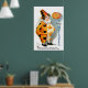 Dekorera väggen med en vacker vintage Halloween-poster med ett sött Halloween-harlequin och en Jack O'Lantern, som målats av den amerikanska illustratören/handelskonsten Ellen Hattie Clapsaddle. com