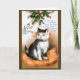 Ett charmerande årskort med en söt liten katt sitta på en kudde under en mistletoe, som målats av den amerikanske åskådaren/handelskonsten Ellen Hattie Clapsaddle.