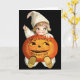 Ett charmigt vintageHalloween kort som presenterar ett gulligt småbarn med en jack O'Lantern som målas av amerikanillustratören/reklamfilmkonstnären Ellen Hattie Clapsaddle.