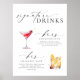 Det här namnteckning dryckesmenytecknet har en modern kalligrafisk skriptrubrik och minimalistisk design. Skripttextrubriken är en bild som inte kan redigeras. Rubrikbilden kan storleksändras så att den passar alla poster storleka. All annan text är helt redigerbar. Mallen innehåller över 100 drycksalternativ. Om du vill ändra dryckesbilden väljer du knappen "Anpassa" och klickar på ikonen öga på lagrar på den lämnat sidan av skärm.