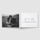 Dokumentera din speciella dag med elegant bröllop gästen bok. Bok har en minimalistisk design med ett skript med kalligrafi. Skriptrubriken är en bild som inte kan redigeras. All annan text är helt redigerbar. Om du vill göra en mer avancerad anpassning av den här designen väljer du bara knappen "Anpassa den" ovan.