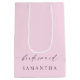 Välkomna din brudtärna med en personlig gåva. Denna brudtärnans väska har en minimalistisk design med ett kalligrafiskt skriftstycke. Anpassa varje väska med din brudtärnas namn. Skriftstycket är en bild som inte kan redigeras. För mer avancerad anpassning av denna design, välj helt enkelt "Anpassa den" knappen ovan.
