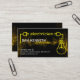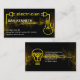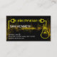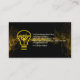 En elektrifierande våg av gult strömmar över ansikte på kortet som levererar ström till sladdarna i strömkontakten och glödlampan. Din jobbtitel "elektriker" överst kan ändras till kostym som ditt företag behöver. Bara under det här är ditt prestigefyllda namn tillsammans med kontaktuppgifterna nära basen.