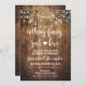 Inbjudan till bröllopsfest om utarmning med bakgrund av rustiskt trä och sträng ljus. Inget finare, bara kärlek, inbjudan till giftermål."