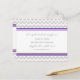 Elopement-vykort i roligt och modern plommonmörk lila, grått och vit chevron retro zigzags mönster, anpassade med dina namn och bröllop-detaljer, perfektens sätt att tillkännage ditt budskap till vänner och familj. Finns i ett brett urval av matchande bröllop-produkter.