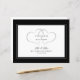 Utformningen av utlysningsmeddelandet för svartvit ny gifta har en vacker chic gräns i svart som innehåller en elegant som framställer vit gräns. "Mr. Och Mrs." finns i snyggtens kalligrafi med två sinsemellan placerade parets första namn, placerade på en skarp vit bakgrund. Kalligrafi och manus är kol-grått på vit bakgrund. Anpassa med ditt namn och bröllop-datum. En modern mall för datum och år kompletterar den unika kalligrafiutformningen. På baksidan av det pappra finns en mall för ditt meddelande och ett rum för ditt handskrivna namnteckning att lägga till den personliga beröringen.