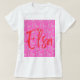 Röd handskriven Elsa namn och repeterad vit grått Elsa namnteckning namn design mönster över solid rosa färg bakgrund