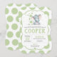 Börjar med din lille pojkes första födelsedag party med en smäll med den här eländiga första personligen på födelsedagen! Med en söt baby-elefant och en grönt polka dots nummer ett. Anpassa det enkelt och snabbt med information om ditt barns namn och party. Tryck bara på knappen Anpassa om du vill ändra ordning på och formatera stil och placering av texten. En matchande grönt polka dots på baksidan av inbjudan ingår.