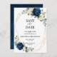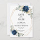 Mörk marin blå blommigt spara datumkortet med elegant bukett av marinblått, royal blått, vitt, guld, champagne elfenben, färg ro, vattenstånd, ranunkulus, peony, blomknoppar och sage grönt eucalyptus löv och elegant vattenfärg med runda glittrens geometriska neutralt ram. Kontakta mig om du behöver hjälp med anpassning eller om du behöver någon annan produkt med den här designen.