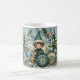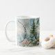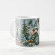 Personlig Jul Elf-kaffe mugg. Utformningen har blå, vit snö, snöflingor, Julgran, julprydnad och julhelg. Använda platshållare för text om du vill anpassa kortet genom att klicka på Anpassa. Redigera med Design verktyg för att välja teckensnitt stil och format.