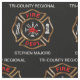 Hedra din favoritbrandman med den här brandfarten. Hatt-, slangs- och stegemblem som kan vara personlig med sin namn och brandavdelning namn eller annan text.