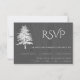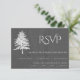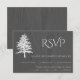 Embossed träd på grått-träkort för rustik bröllop OSA med val av måltid. Det visar en barrträd träd i präglat relief stil på grått-trälåda och "OSA" i ett dekorativt typsnitt.