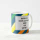 En lugnande inspirerande mugg till behålla som en påminnelse om livet sätter dig att bry dig om. Texten, som du kan anpassa ytterligare, lyder som "EMBRACE life, SKAPAR affärsmöjligheter, GROW, GE, { REPEAT }" I bakgrunden av färgstarka diagonala band.