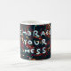 A chaotic swirl of colorful scribbles forms a circular pattern. The center features the words "Embrace Your Mess" in clear blue.