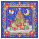 Faux Embroiderade Decorated Julgran med gåvor under träd. Träd är utomhus under ett kust måne.