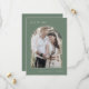 Det här archfotomoderna bergskortet bröllop spara datum är perfekt för ett trämålbröllop. Grönten av mörkens sädesslag har en rustik och enkel typografi med ett skogsbergsmärke. Anpassa din spara datumet med ett förlovning-foto, ditt namn och ditt bröllop-datum. Lägg till webbplatsen bröllop längst bak på kortet.