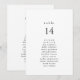 De minsta sittplatskorten bröllop är perfekt för ett minimalistiskt bröllop. Den svarta och vita designen har en modern boho obemannad typografi med ett unikt minimalistiskt stil. Kortet skrivs ut på framsidan och baksidan (dubblan).