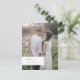 Det här platta, minimalistiska, unika raka fotot bröllop-tacket från Emelia-samlingen är perfekt för ett minimalistiskt bröllop. Den svarta och vita designen har en modern boho obemannad typografi med ett unikt minimalistiskt stil. Anpassa designen med ditt favoritfoto till förlovningen. Anpassa tackkortets baksida med namn och ett tackmeddelande. Du kan också lämna tackmeddelandemallsavsnittet tomt om du vill att skrivan ska förses med en personlig på varje kort när de har anlänt.