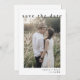 Detta minimalistiska fotounika bröllop spara datum-kort för neutralt är perfekt för ett minimalistiskt bröllop. Den svarta och vita designen har en modern boho obemannad typografi med ett unikt minimalistiskt stil. Anpassa din spara datumet med ett förlovning-foto, ditt namn och ditt bröllop-datum. Lägg till webbplatsen bröllop längst bak på kortet.