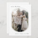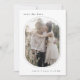 Det här roliga ovala, moderna bröllop spara datum-kortet är perfekt för ett minimalistiskt bröllop. Den svarta och vita designen har en modern boho obemannad typografi med ett unikt minimalistiskt stil. Anpassa din spara datumet med ett förlovning-foto, ditt namn och ditt bröllop-datum. Lägg till webbplatsen bröllop längst bak på kortet.