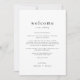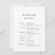 Denna enkla ruttmall för bröllop helg från Emelia-samlingen är perfekt för ett minimalistiskt bröllop. Den svarta och vita designen har en modern boho obemannad typografi med ett unikt minimalistiskt stil. På framsidan av välkomstpåssedeln finns ett bröllop välkommet brev och baksidan har tidslinjen bröllop. Dessa anteckningar är perfekt för destinationsbröllop och hotellgästväskor.
