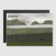En "primitiv" eller stil-målning av grönt Conifer och berg på en mycket grått dag med låga hängande moln. En tjurmos (Alces alces) i förgrunden lånar ut till scenen. Anpassadet "Alaska" står också med.