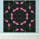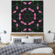 A striking abstract design featuring glowing green geometric forms intertwined with vivid pink petal shapes, set against a deep black background. This kaleidoscopic artwork blends digital symmetry with floral inspiration, creating a bold, modern mandala that feels both organic and futuristic. Perfect as statement wall art, home décor, apparel, or accessories for lovers of vibrant colour, sacred geometry, and contemporary abstract design.