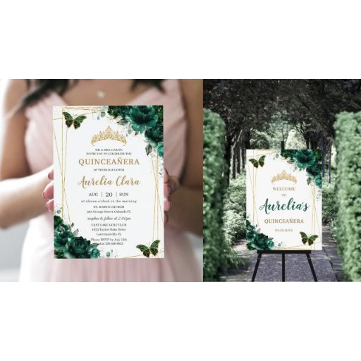 Chic Emerald Green Quinceañera Designad av The Happy Cat Studio