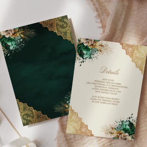 Emerald Blommigt Guld Snöre Cream Muslim Bröllop OSA Kort