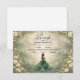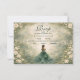This elegant quinceañera design features a soft emerald green watercolor background framed by romantic ivory roses, delicate greenery, and subtle gold accents, with a graceful gown illustration creating a refined, enchanted garden atmosphere. The rich green palette combined with classic florals gives the design a luxurious yet youthful feel, perfect for a timeless quinceañera celebration with a romantic, nature-inspired aesthetic.