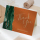Detta eleganta moderna bröllopstack som du har med dig ett kort med en framväxande grön vattenfärgad agate-gräns som trimmas med faux gold glitter. I den anpassningsbara texten kombineras orden "Tack" i guldfärgat handskriftsskript och namnen på briden och trimmen i kursivt teckensnitt på en bränd orange bakgrund.