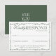 A classy and elegant calligraphy emerald green and white retro old money wedding rsvp card. That has a vintage and modern white background with green script and hand written whimsical stylish wording and hand drawn branches. Luxurious and chic with classic handwritten lettering. It is all editable by clicking on the personalize button.
