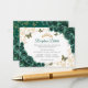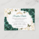 Emerald green gold Quinceanera reception details enclosure cards. Features, script font, gold butterflies, watercolor roses and tiara. Perfect for an elegant princess style glam celebration. Personalize with your own details.